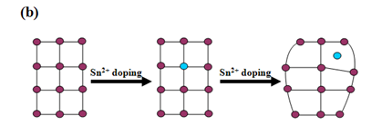 在此,我们设计通过掺杂Sn2+离子来提高上转换发光强度。然而,有关Sn2+离子掺杂的报道还不多见,其主要原因有以下两个方面:(1) 离子半径和电荷数的差异使掺杂的Sn2+离子难以进入基质主晶格;(2) Sn2+离子在水溶液中易水解,可能在最终产物中引入杂质。