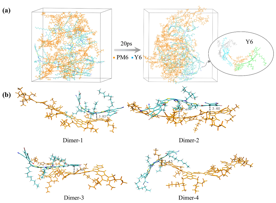 图1AIMD模拟PM6:Y6二聚体分子堆积形貌