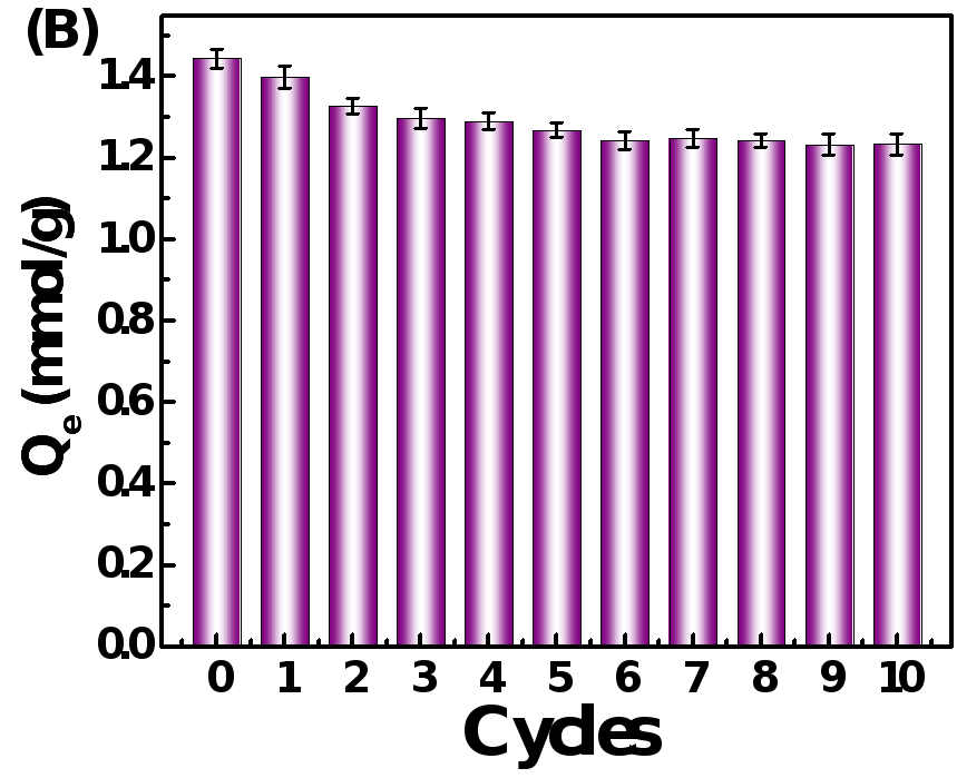 图1 PVDF/BDBTU复合膜对银离子的吸附选择性(A)和循环性能(B)。