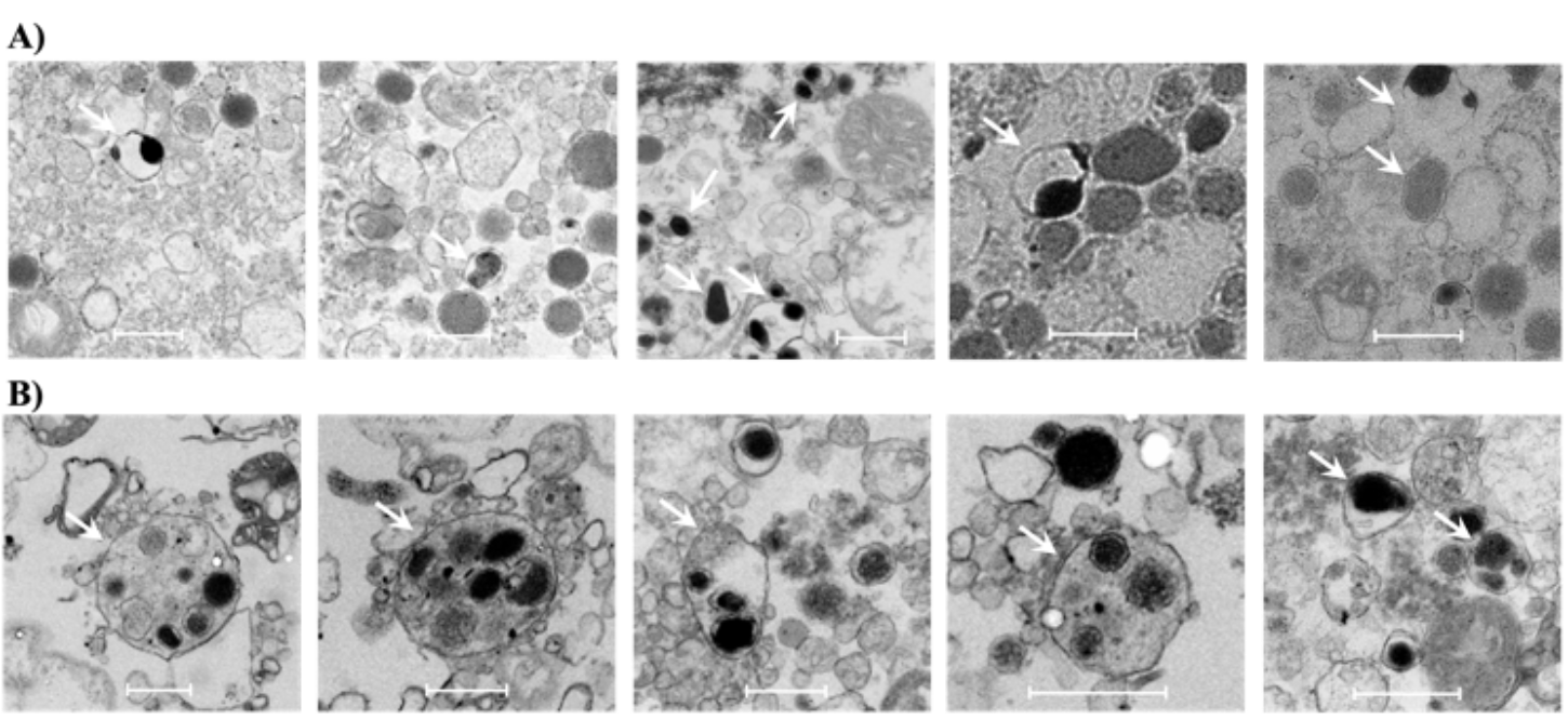 进一步地,我们通过透射电子显微镜(TEM)清晰地观察到了小部分具有双核/多核的大致密核囊泡(LDCV)(图3),证实SGs诱导LDCV之间的同型融合。这可能是细胞在受到高氧化应激后获得生存的保护步骤。