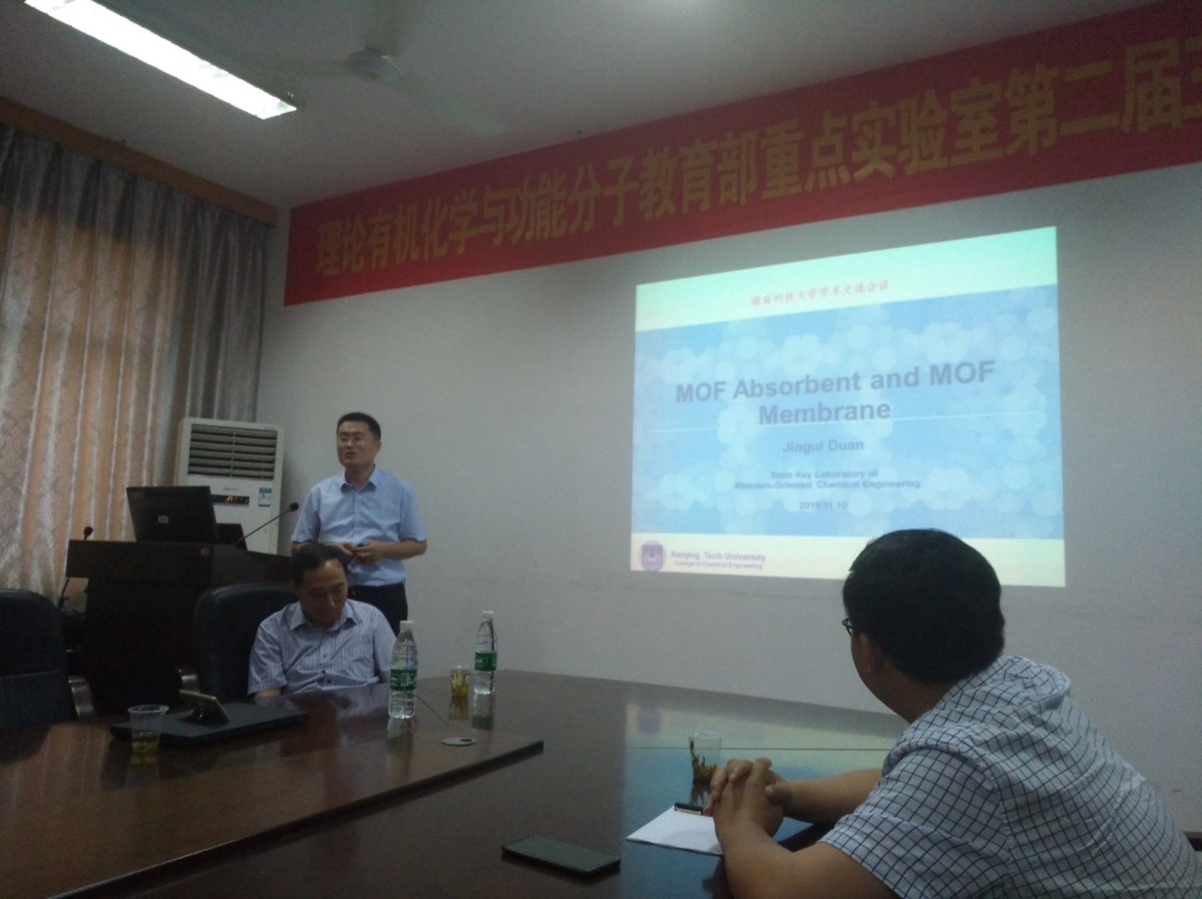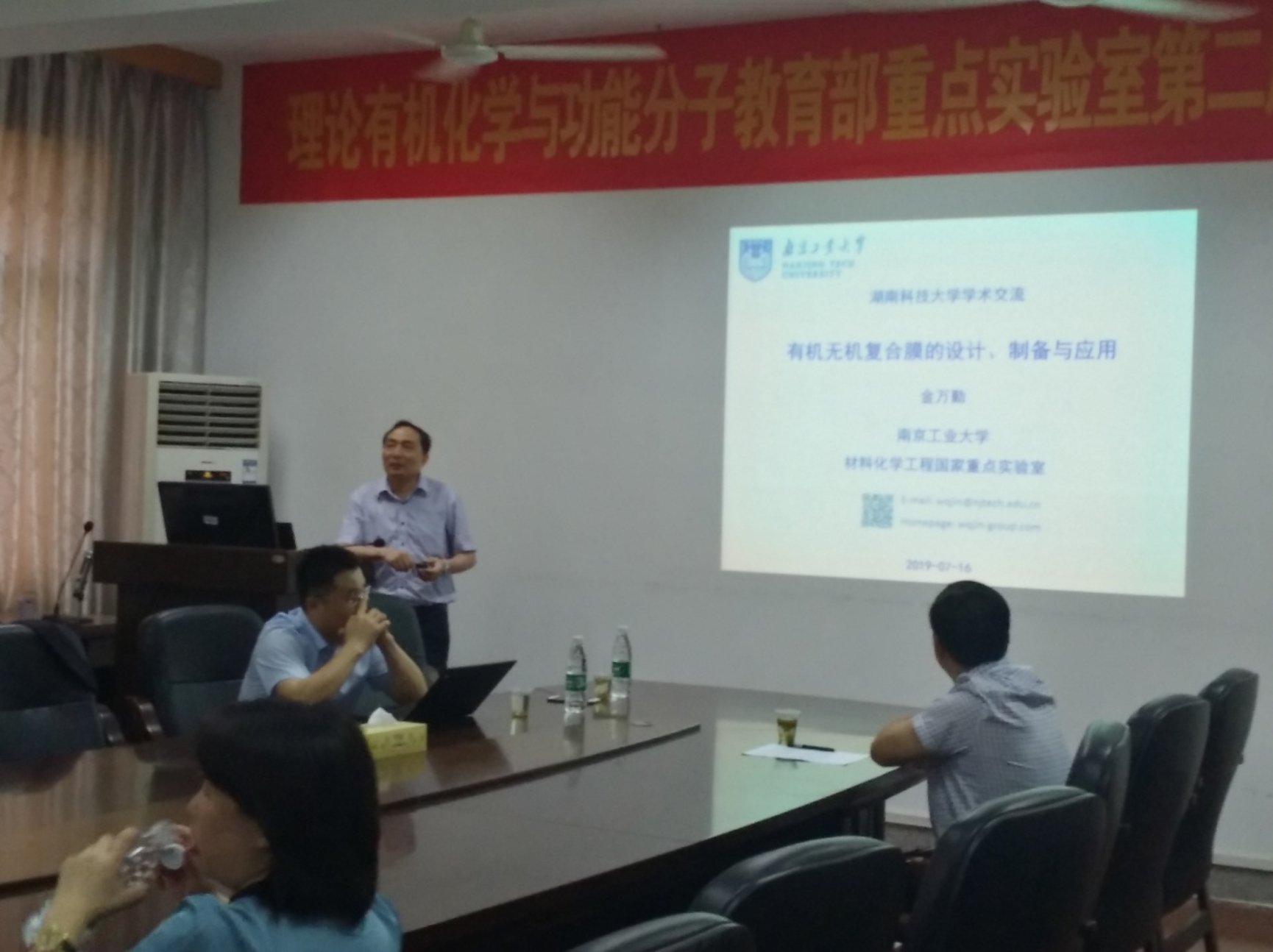 2019年7月16日上午9点半,应betway88西汉姆联和理论有机化学与功能分子教育部重点实验室的邀请,南京工业大学金万勤、段金贵教授在化工楼三楼学术报告厅分别做了题为“有机无机复合膜的设计、制备与应用”,“孔性配位聚合物设计,组装与能源气体分离”的学术报告。betway88西汉姆联师生、理论有机化学与功能分子教育部重点实验室科研人员等到场聆听。此次报告会由公司经理周虎教授主持。