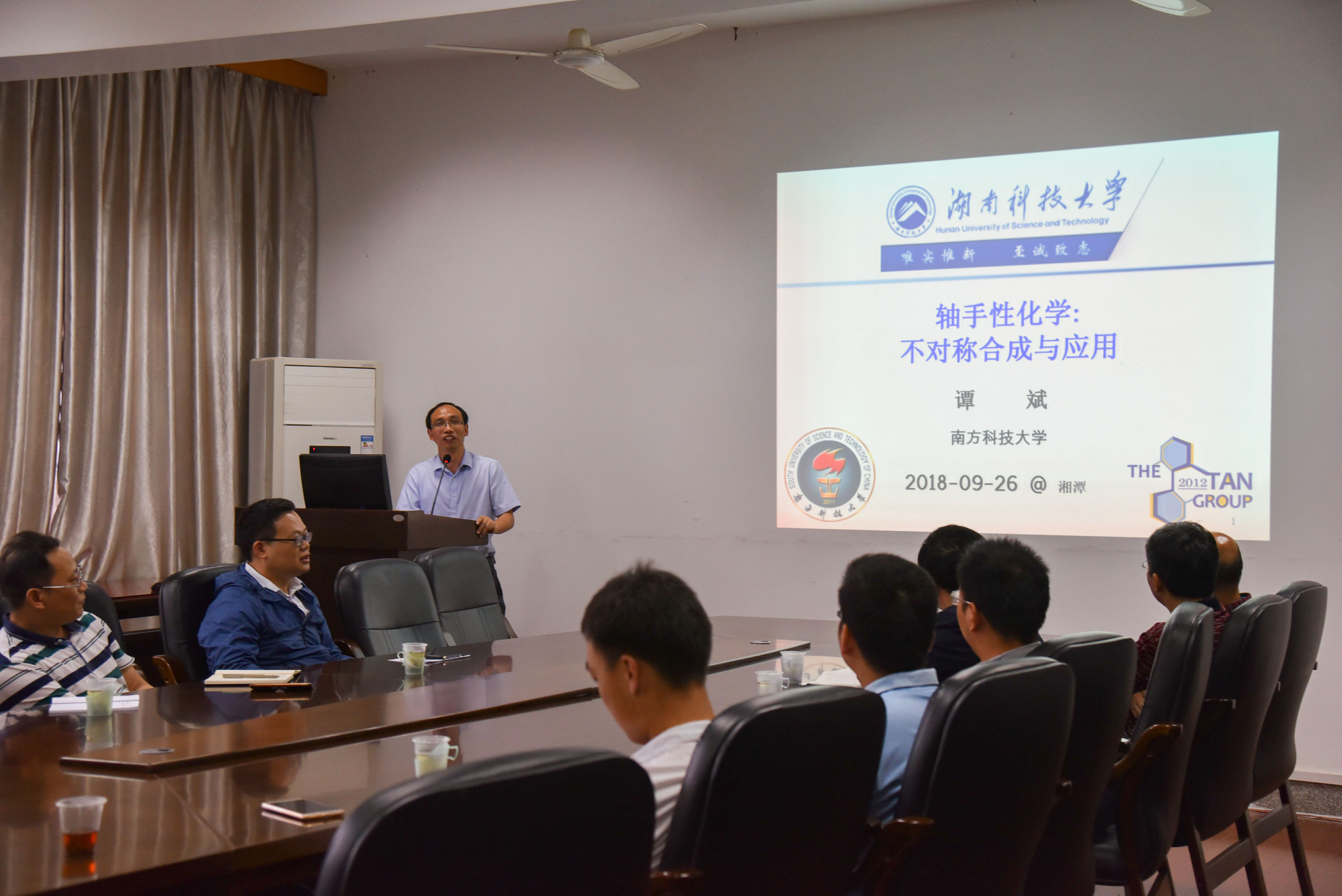 2018年9月26日下午,应betway88西汉姆联和理论有机化学与功能分子教育部重点实验室的邀请,国家杰出青年基金获得者谭斌教授在化工楼三楼学术报告厅以“轴手性化学:不对称合成与应用”为主题,做了一场精彩的学术报告。betway88西汉姆联师生、理论有机化学与功能分子教育部重点实验室科研人员等到场聆听。此次报告会由公司周虎书记主持。