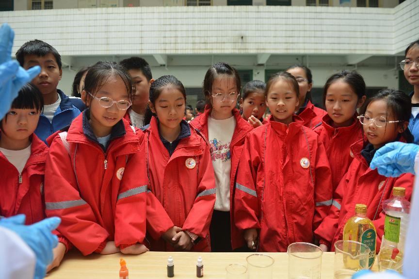 当试剂瓶中液体瞬间绽放斑斓色彩,当自制的“熔岩灯”翻腾起梦幻光影……一双双充满好奇的眼睛,点亮了betway88西汉姆联的实验室。10月26日下午,一场以“立德树人、科教融合”为主题的科学教育实践活动在这里生动开展,平江县第一学区200余名中小学师生走进大公司园,在化学的奇幻世界中沉浸式体验科学的魅力。
