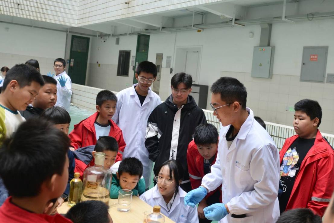 “看,颜色变化就像彩虹,这就是化学反应在‘说话’!”活动现场,老员工志愿者化身科普引路人,精心设计了“熔岩灯”“显色反应”等集安全性与趣味性于一体的实验项目。他们用生动语言将抽象原理转化为易懂的故事,让孩子们在安全可控的环境中从聆听者变为探索者——亲手操作、细心观察,感受理论与实践碰撞的火花。实验台前专注的身影,实验结束后热烈的讨论,让大学实验室成为激发科学热情的“第二课堂”。