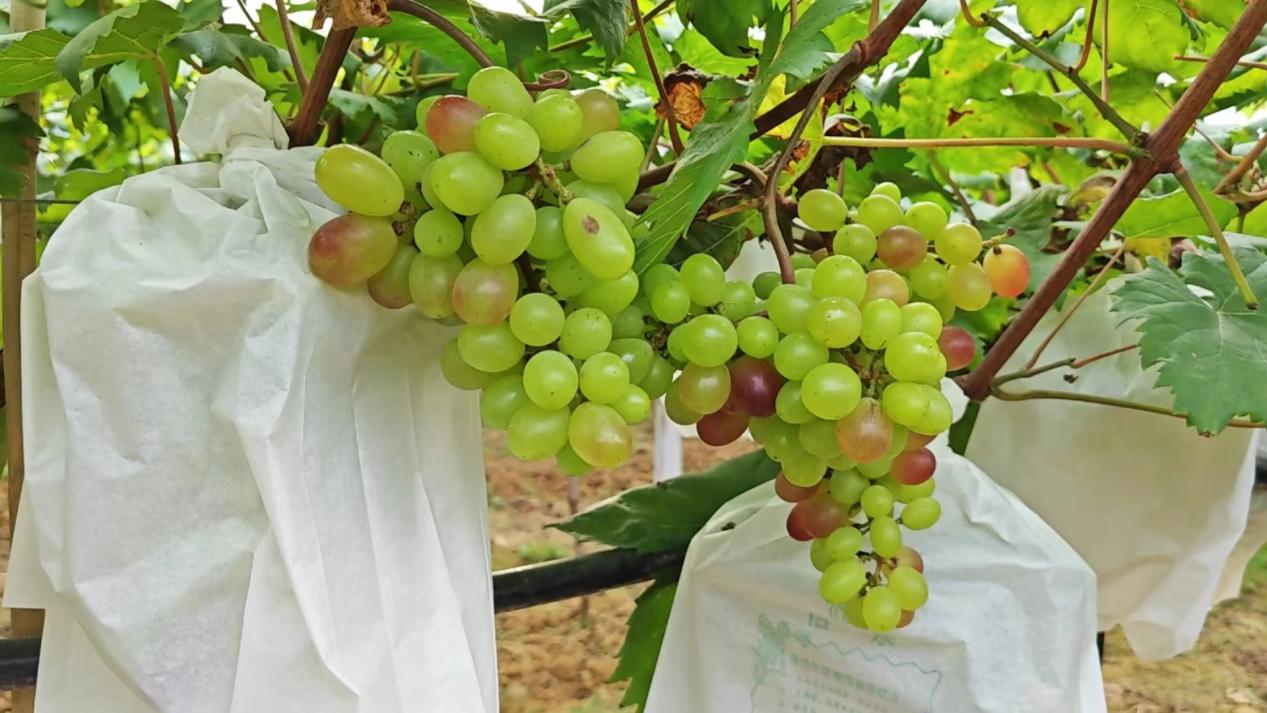 7月15日,正值红提的转色期,betway88西汉姆联“小小梦想家”暑假实践团走进邵阳市洞口县高沙镇茶铺村雪峰红提产业园进行调研活动,一望无垠的大棚中,一串串红提密密地悬挂在藤上,翠绿深红交错的饱满果实令人垂涎欲滴。