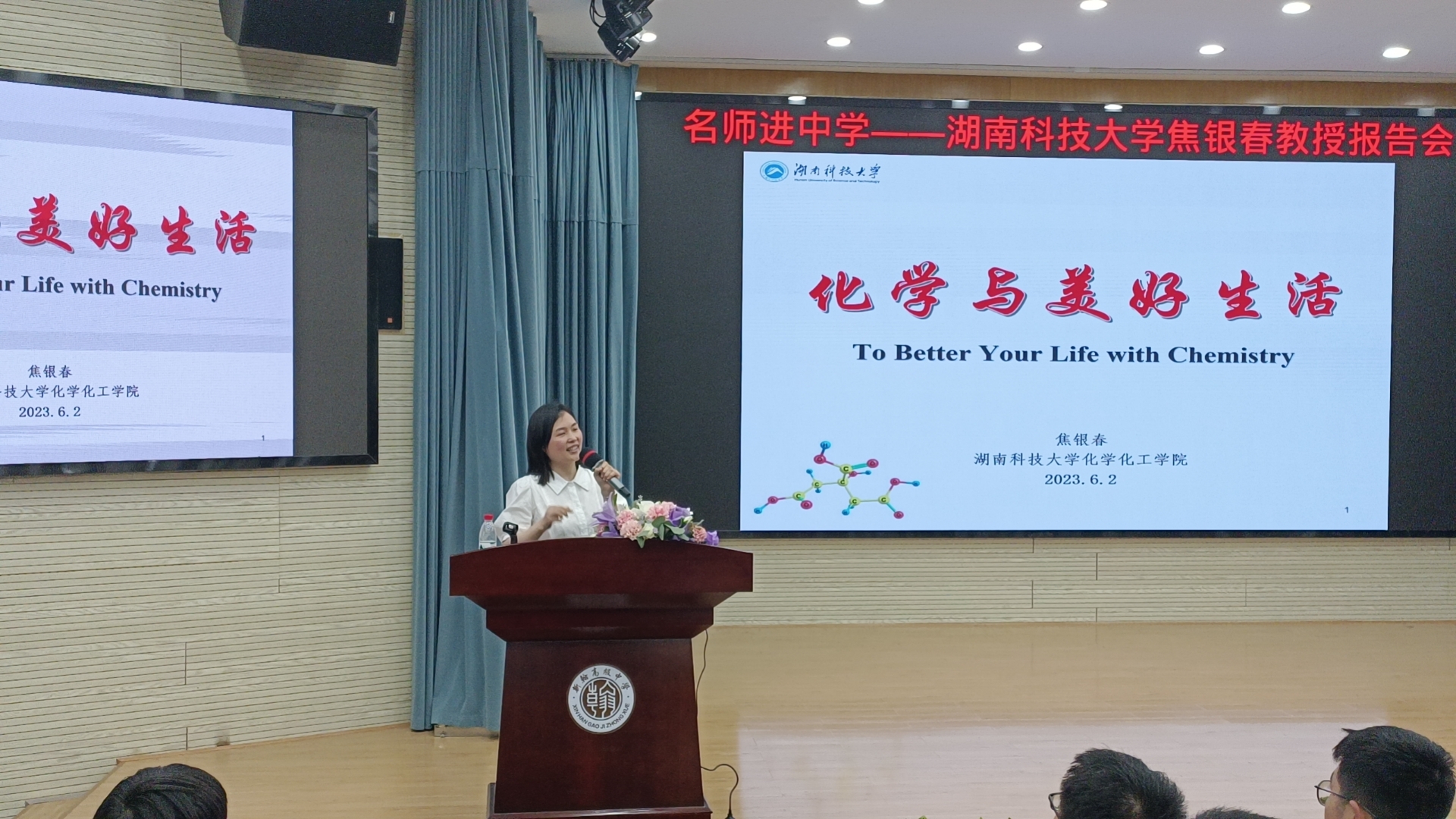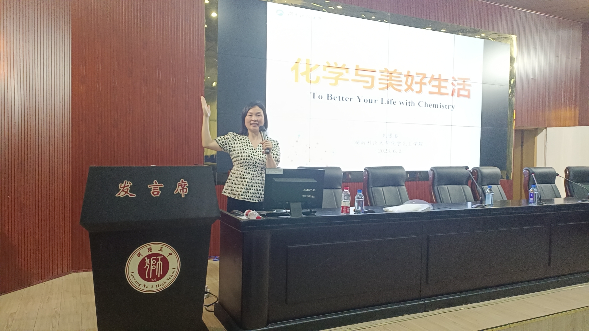 6月2日,为推进公司“名师进高中——协同构建双高育人共同体”招生宣传活动,betway88西汉姆联焦银春老师分别在浏阳新翰高级中学和浏阳市三中开展了主题为“化学与美好生活”的两场科普讲座。讲座分别由浏阳新翰高级中学副董事长向明和公司化学化工公司党委书记周文革主持。
