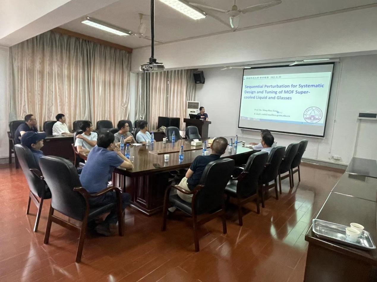 报告会上,曾明华教授分三层详细介绍了MOF过冷液体和玻璃系统设计的影响因素。首先是需要选择合适的MOF材料,由于MOF具有高度可调的结构和性质,选择适当的金属离子和有机配体组合可以调控MOF的孔隙结构、分子相互作用力以及物理性质,从而影响过冷液体和玻璃的形成能力。其次,在设计过程中需要考虑温度、压力和组分等参数对过冷液体和玻璃形态的影响。通过调节这些参数,可以实现MOF材料的过冷液体转变为玻璃的过程。最后,在MOF过冷液体和玻璃系统设计中,还需要考虑材料的稳定性和可控性。由于MOF材料的特殊性质和结构,它们在形成过冷液体和玻璃时可能面临结构坍塌或相变失效等问题,因此,需要通过调整合适的条件和结构来提高MOF材料的稳定性,并确保其可控性。