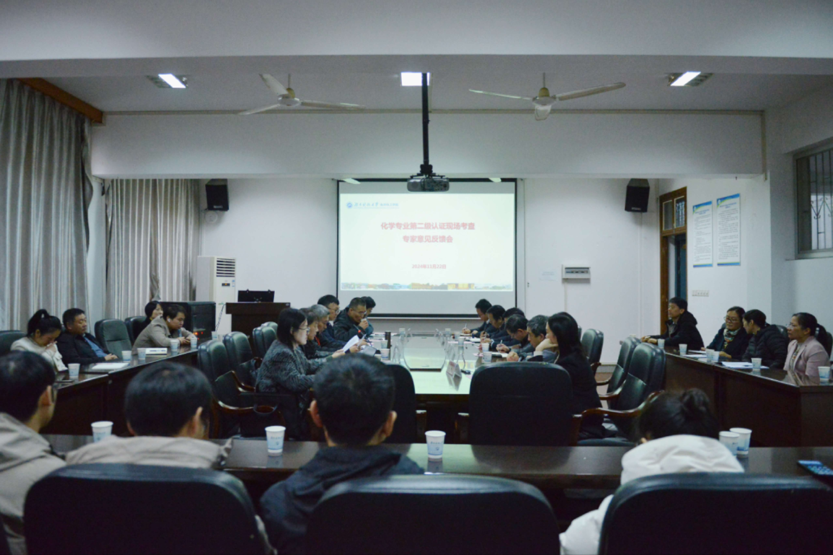 会议伊始,化学专业师范类认证专家组成员依次反馈个人意见,专家组组长率先就培养目标进行反馈,他指出了公司培养目标中存在的不足之处并给予改进建议;随后其余专家依次对毕业要求、课堂设计、实践教学、员工管理和实验室支持条件等方面进行系统分析,概括出公司化学系教育工作中出现的问题和面临的挑战,并给出了针对性的指导意见。