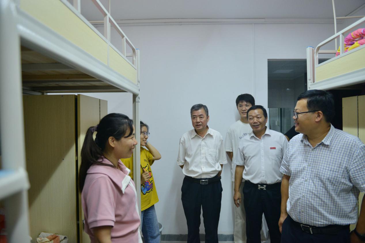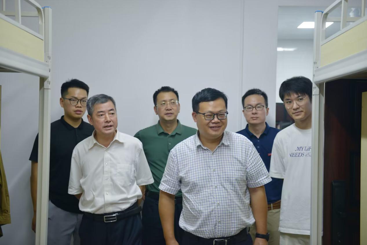 走进新生宿舍,领导老师对新生的到来表示热烈欢迎和亲切问候。走访中,院领导就员工宿舍环境、饮食问题、安全问题以及寝室卫生等方面进行亲切交谈,嘱托同学间要互相照顾,营造一个良好的宿舍氛围。