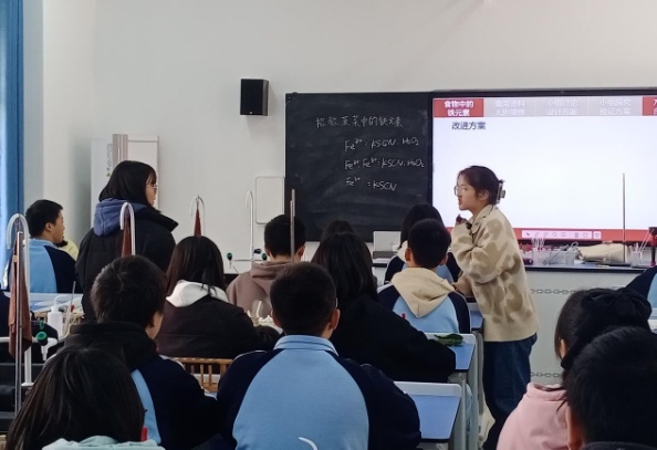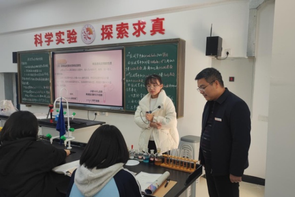 为了促进实习老师专业成长,实习第八周实习队开展了校内公开汇报课活动,由毛芳华和龙金美主讲。汇报课于2023年11月16日上午开展,醴陵三中谭世明书记、杨毅鑫董事长、彭海波主任及高二年级化学备课组长李梦银老师来到现场参与观摩并给予指导。汇报课上,两位实习老师展现了实习队的精神风貌和教育实习成果。观摩课后,校领导和指导老师对我们的工作表示赞扬和认同,参与观摩的老师们也对实习老师的课堂进行点评,细心地指出实习老师的不足及改进建议。