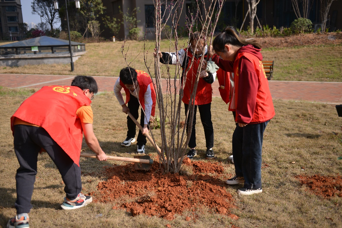 吹面不寒杨柳风,阳春三月,志愿者们满怀热情地在金水湾社区为大地铺上新绿。志愿者们三四成组、分工明确,有的舞锹铲洞、扶立树苗,有的培土浇水、筑稳根基,各个环节有条不紊地顺利进行。众人齐心默契高,转眼间棵棵幼苗向阳挺立,为金水湾社区增添了几分春日的盎然生机。最后,大家引水悉心浇灌,期待来年绿树成荫、花香满园。