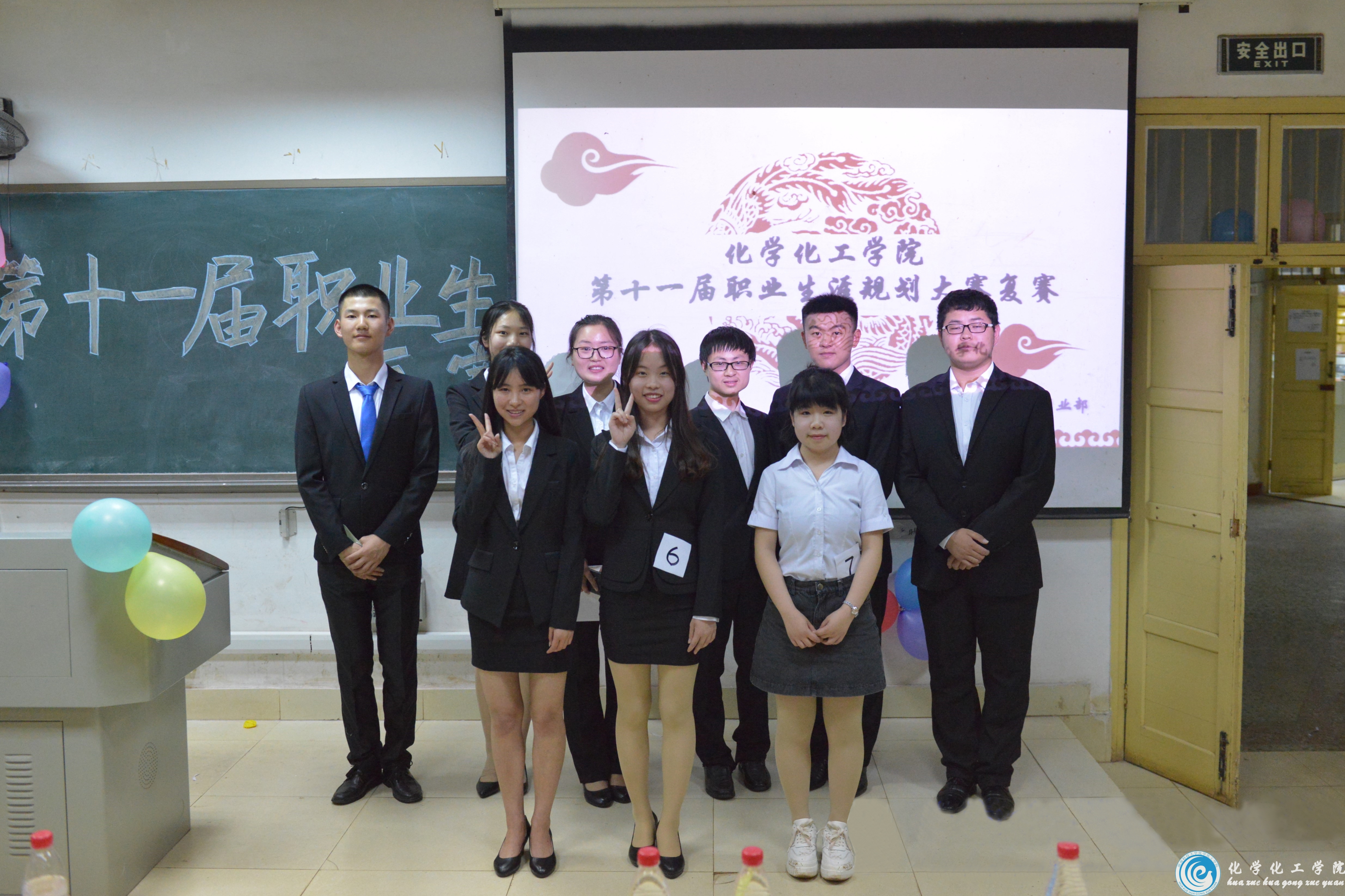 本次比赛分职业规划阐述和评委评分两个环节。参赛选手结合PPT演示文稿,从自我分析、职业认知、就业前景、目标与实现计划以及评估调整方案等五个方面进行阐述,评委根据选手的阐述、职规书设计以及现场的综合表现进行评分。整个比赛过程井然有序,每一位选手的职业生涯规划设计都结构完整、逻辑清晰,职业生涯目标制定贴切合理,演讲过程富有感染力。其中,化学一班刘盈仪态大方,口齿清晰,以其出色的台风,生动流畅的演讲和合理的职业规划设计受到评委们一致好评。环境工程二班周笠面对PPT无法打开的突发状况,不慌不忙,现场发挥,灵活且幽默的语言给观众们留下深刻印象。此外,公司励志社的社员们带来一段精彩的舞蹈串烧,更是将现场的气氛推向高潮。