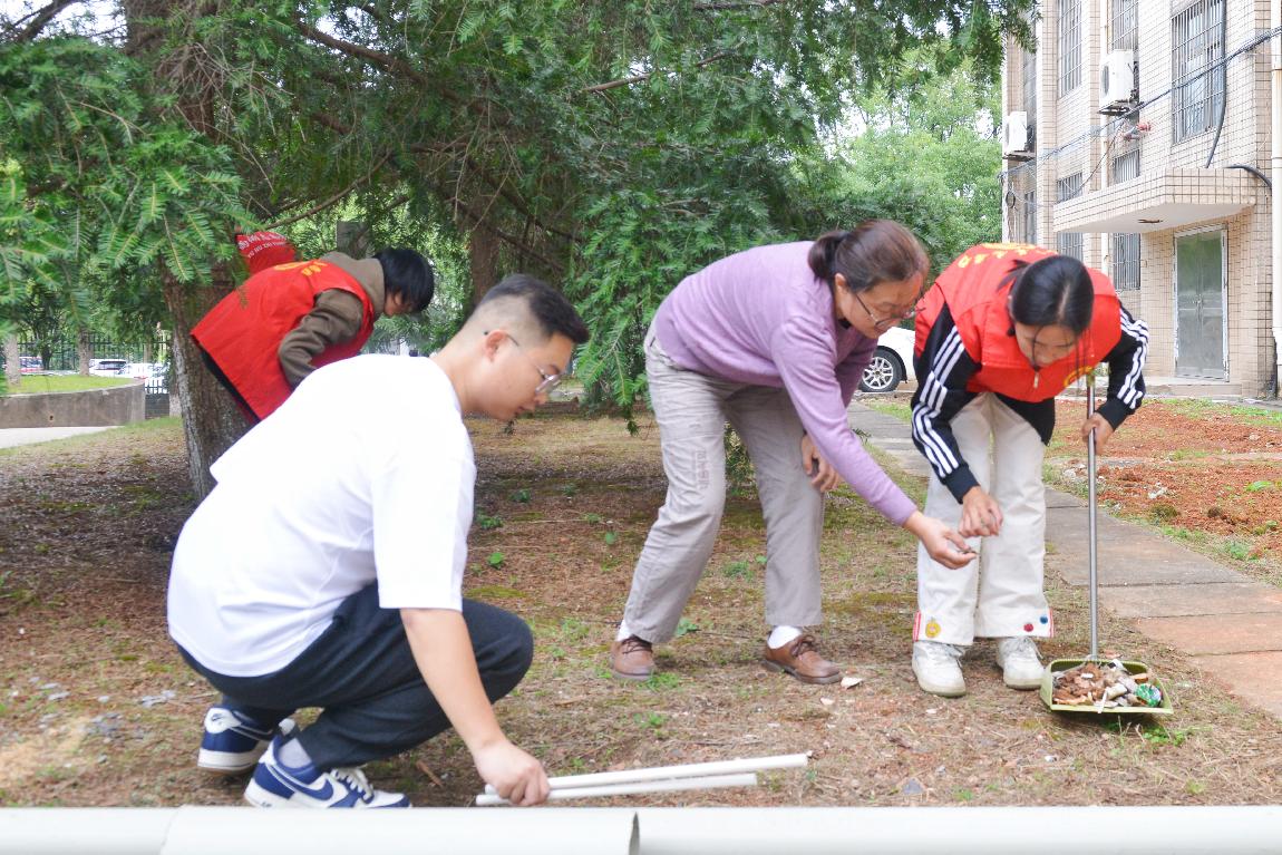 活动过程中,志愿者们分成四个小组负责不同区域卫生,充分发挥不怕脏、不怕累、不怕苦的精神,对卫生死角、绿化带进行了全面的清扫。在志愿者辛勤地劳动下,一个个宿舍楼道的“牛皮癣”被及时清理,化学楼、化工楼内外的杂物被清除一空,为同学们营造了一个干净整洁、舒适温馨的学习、科研环境。