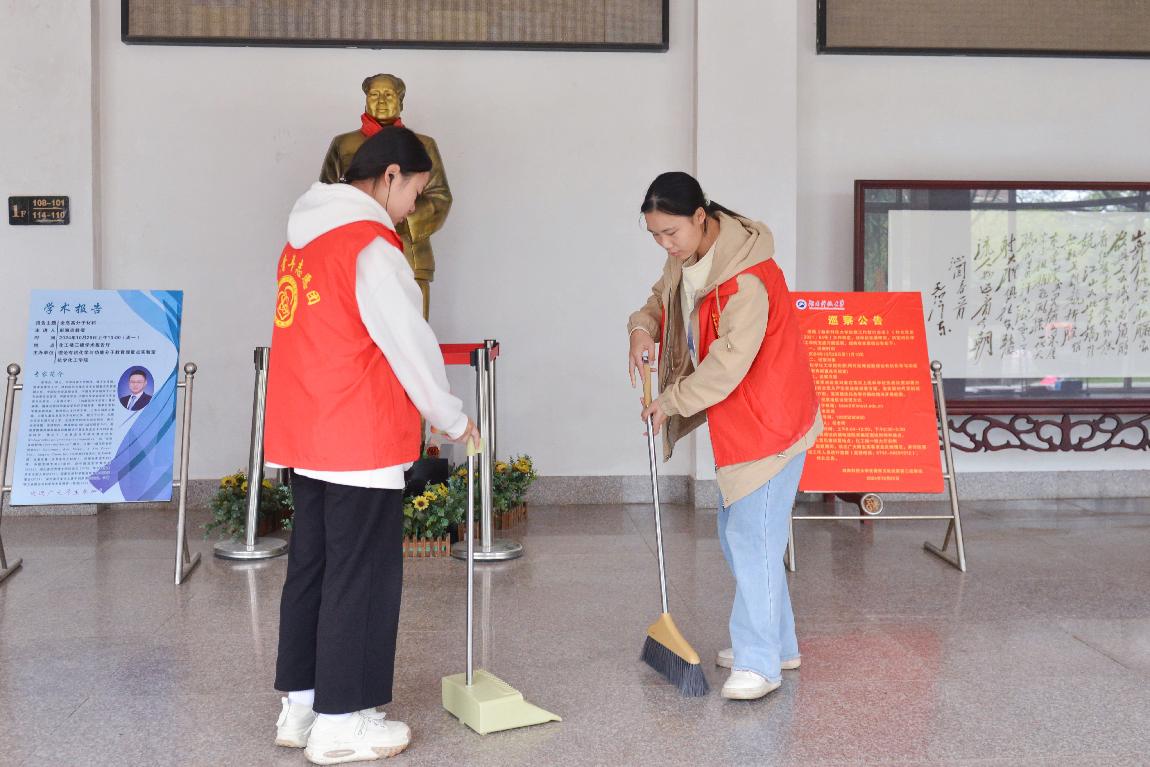 辅导员李晓湘、周椿富带领志愿者进行劳动