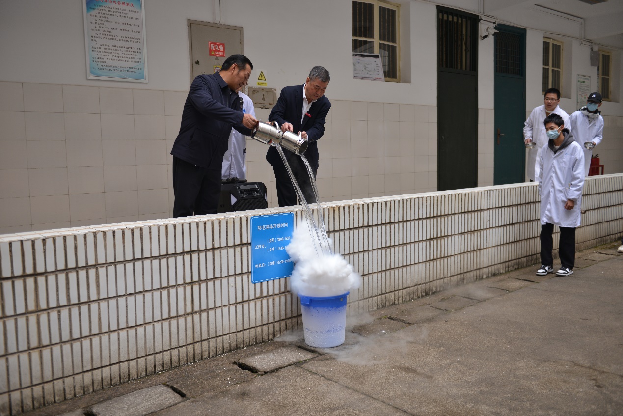 周文革、周小明演示“蘑菇云”实验