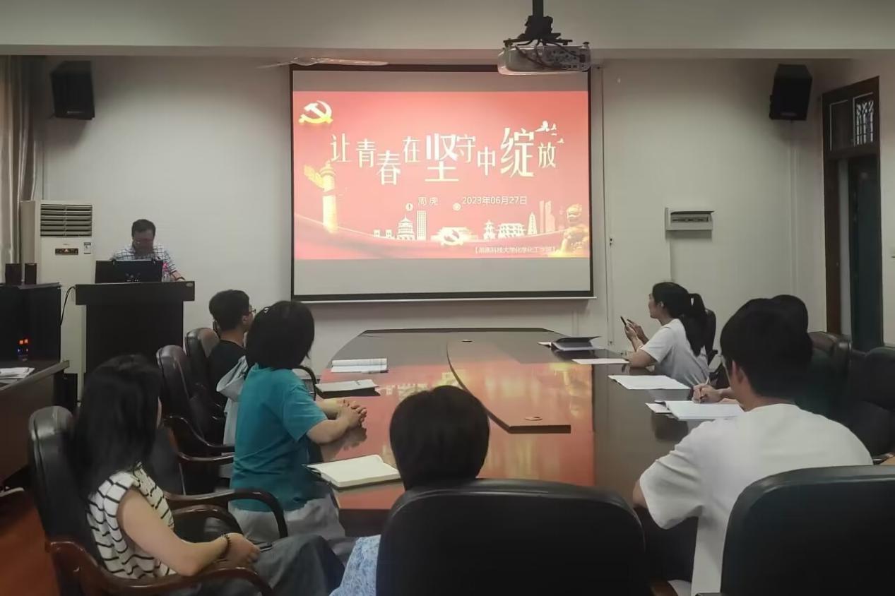6月27日上午,betway88西汉姆联在化工楼310开展“让青春在坚守中绽放”主题党课。本次党课由betway88西汉姆联经理周虎主讲,教师党员和员工党员到场观摩学习。