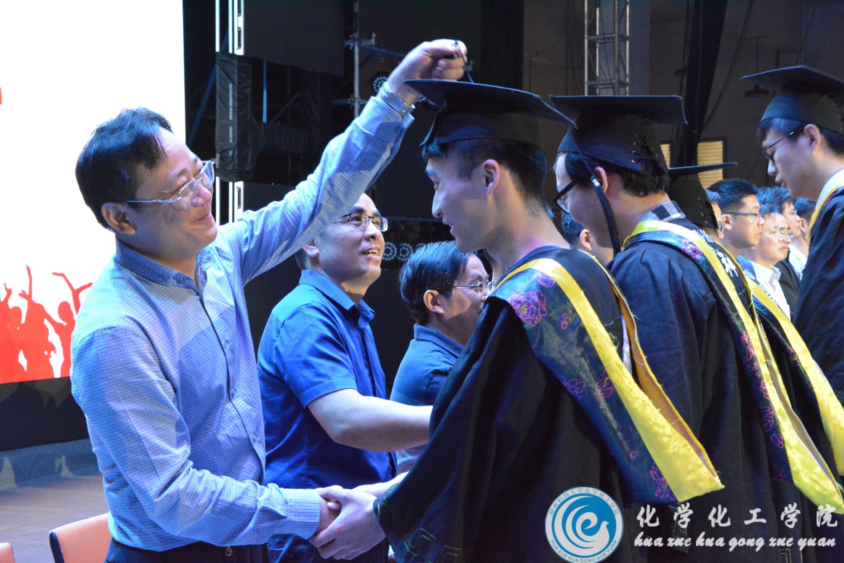 岁月成诗句,光阴入画中。又是一年毕业季,又是一次离别时。6月6日上午10点,公司2019届毕业典礼暨学士学位授予仪式在公司南校区俱乐部隆重举行。莅临本次典礼的领导和嘉宾有:教务处处长周智华教授,公司经理周虎教授,党委书记曾荣今教授,理论有机化学与功能分子教育部重点实验室主任唐子龙教授,党委副书记易贵元老师,副经理许中坚老师、龙云飞老师、郑柏树老师,理论有机化学与功能分子教育部重点实验室副主任黄昊文老师,化学工程系系主任曾坚贤老师,应用化学系系主任刘立华老师,化学系系主任张杰老师、副主任刘狄老师,环境工程系系主任伍泽广老师,公司党委委员、工会主席李国斌老师以及员工工作办公室全体老师。公司2019届全体毕业生及毕业生家长代表共同参与此次盛会。本次典礼由曾荣今书记主持。