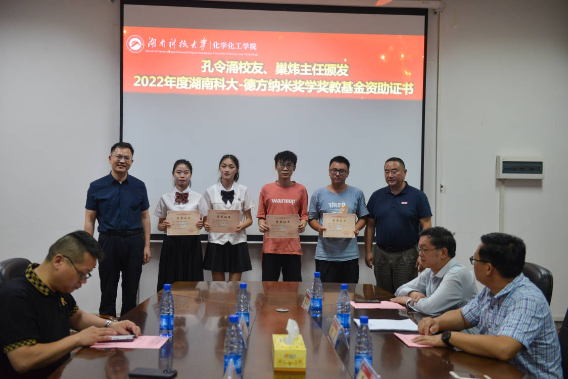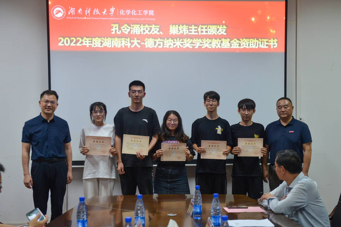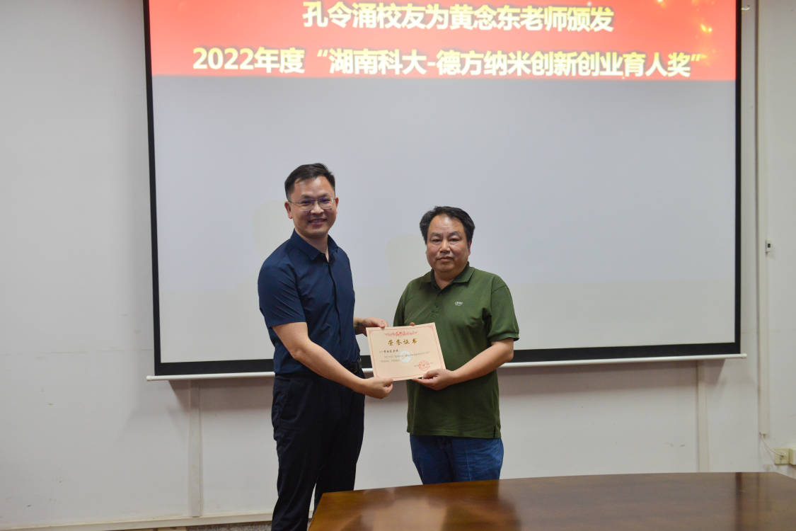 随后,公司党委副书记周小明汇报“湖南科大-德方纳米创新创业奖学奖教基金”运行情况并宣读表彰文件。据周小明介绍,基金由“湖南科大-德方纳米创新创业卓越学子奖学金”“湖南科大-德方纳米创新创业育人奖”“湖南科大-德方纳米创新创业竞赛基金”和“湖南科大-德方纳米创新创业基础条件建设基金”四个部分组成。自基金成立以来,已产生“湖南科大-德方纳米创新创业育人奖”1人,创新资助项目4个。此外,2023年下半年,受基金资助的4个项目将全部启动。